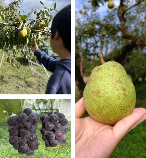 また、季節によってはりんごやぶどうの収穫体験も実施しており、